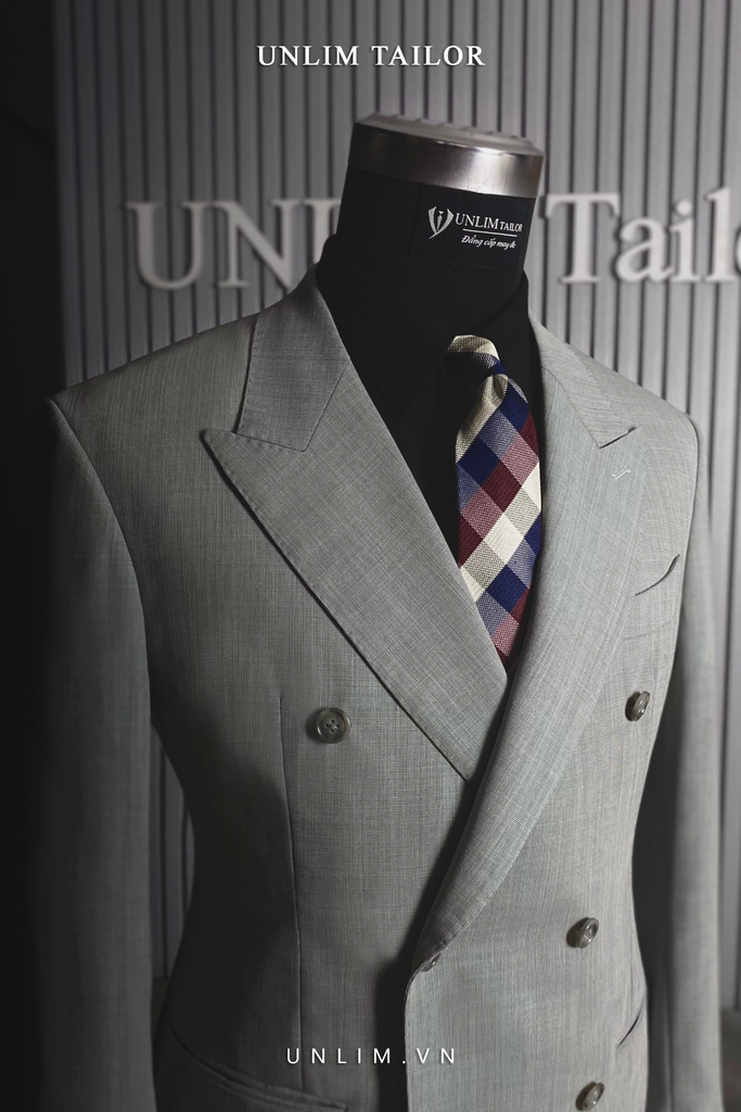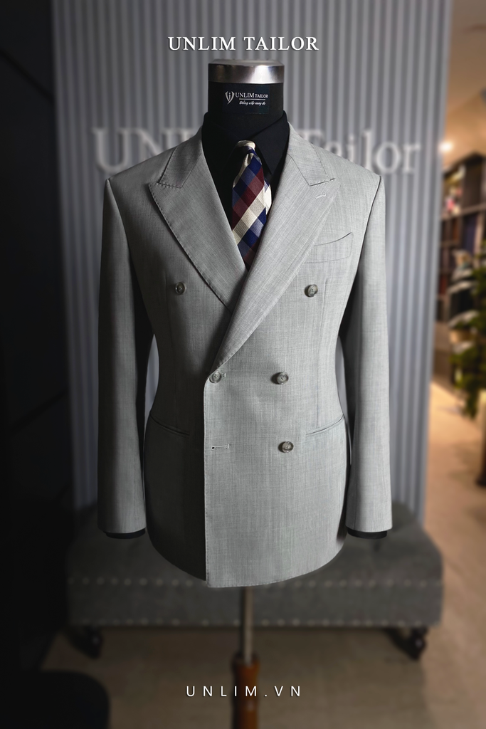 Chia sẻ Suit Xám Sáng Bạc Cổ Nhọn Hai Hàng Khuy