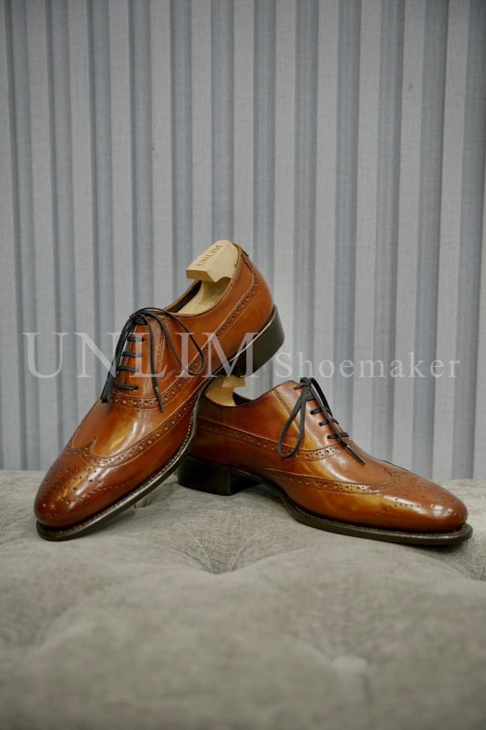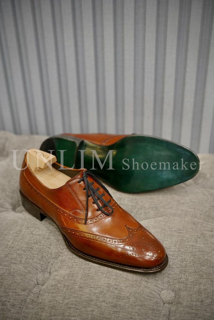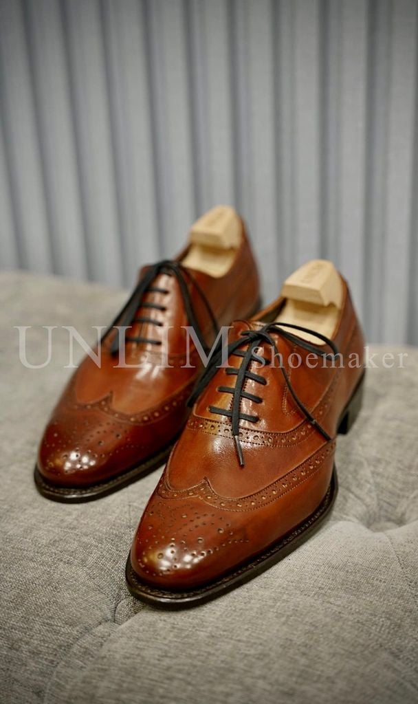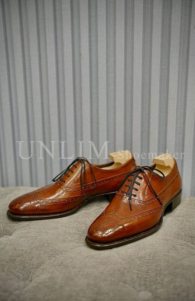 Giày Oxford Brogue Nâu Da Bò Ý