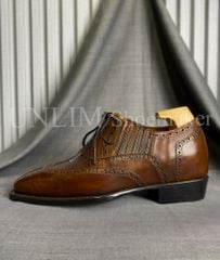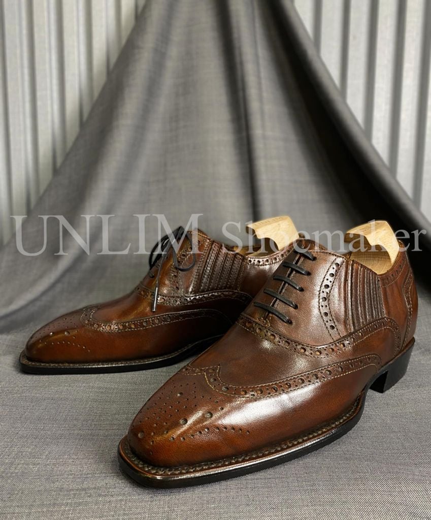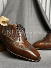 Giày Oxford Brogue Nâu Da Bò Ý