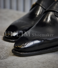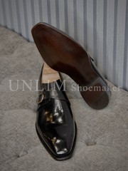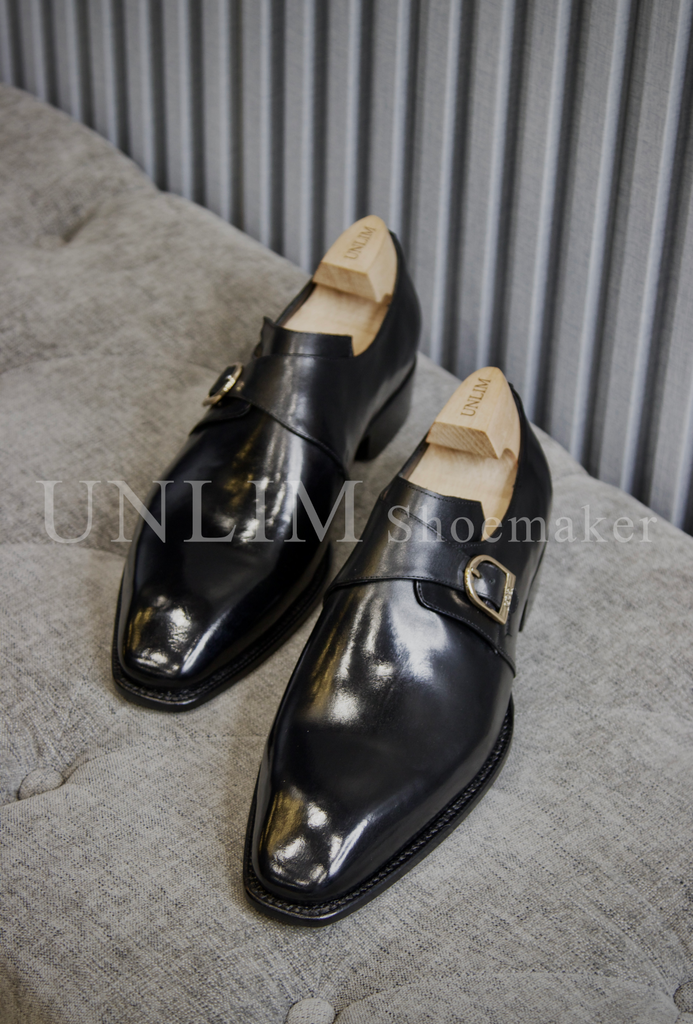 Giày Single Monkstrap Đen Da Bò Ý