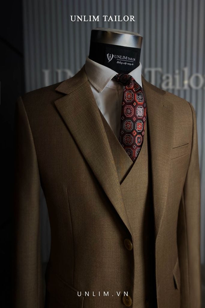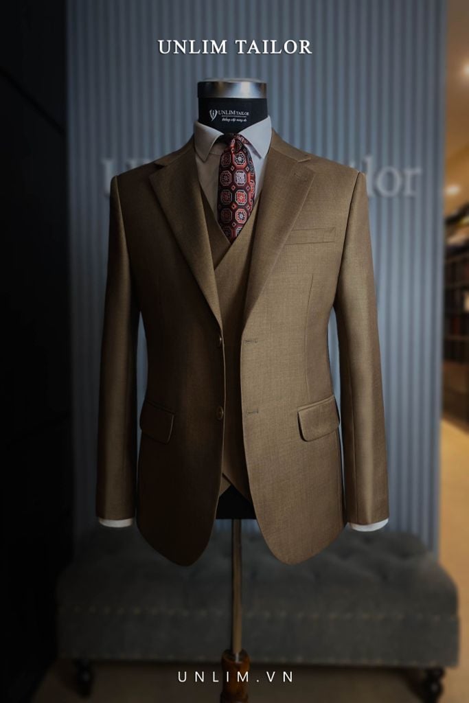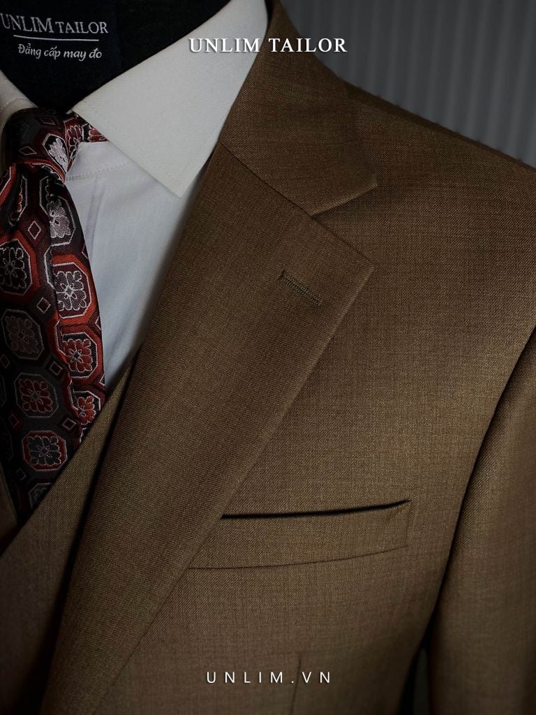 Bộ suit tông nâu ấm áp từ UNLIM Tailor là lựa chọn hoàn hảo cho quý ông muốn khẳng định gu thẩm mỹ độc bản. Thiết kế hai cúc cùng ve chữ K (Notch Lapel) bản lớn tạo nên sự cân đối, trẻ trung nhưng vẫn giữ trọn nét cổ điển.